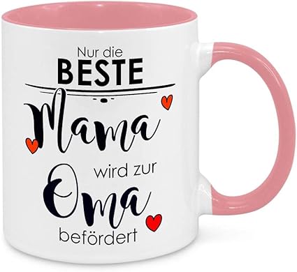 Mugaholic Nur Die Beste Mama Wird Zur Oma Befordert Farbig Ausgefullt Rosa Tasse Mit Spruch Geburt Baby Nachwuchs Amazon De Kuche Haushalt
