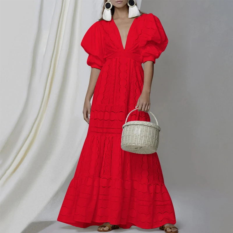 Luckeytimes Beilaufige Lose Sommer Kleid Frauen Chic V Ausschnitt Maxi Weiss Spitze Kleider Hippie Gypsy Stil Strand Boho Vestidos Sml Loose Summer Dress Lace Dresssummer Dress Aliexpress