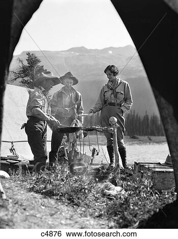 1930s Campingplatz Beugen See Alberta Kanada 2 Manner 1 Frau Ungefahr Lagerfeuer Stock Fotograf C4876 Fotosearch