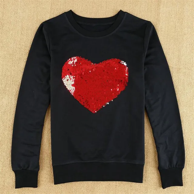 Schwarz Mit Rot Herz Pailletten Glitzer Rundhals Kurzarm Oversize Beilaufige T Shirt Damen Tops Gunstig T Shirts Oberteile