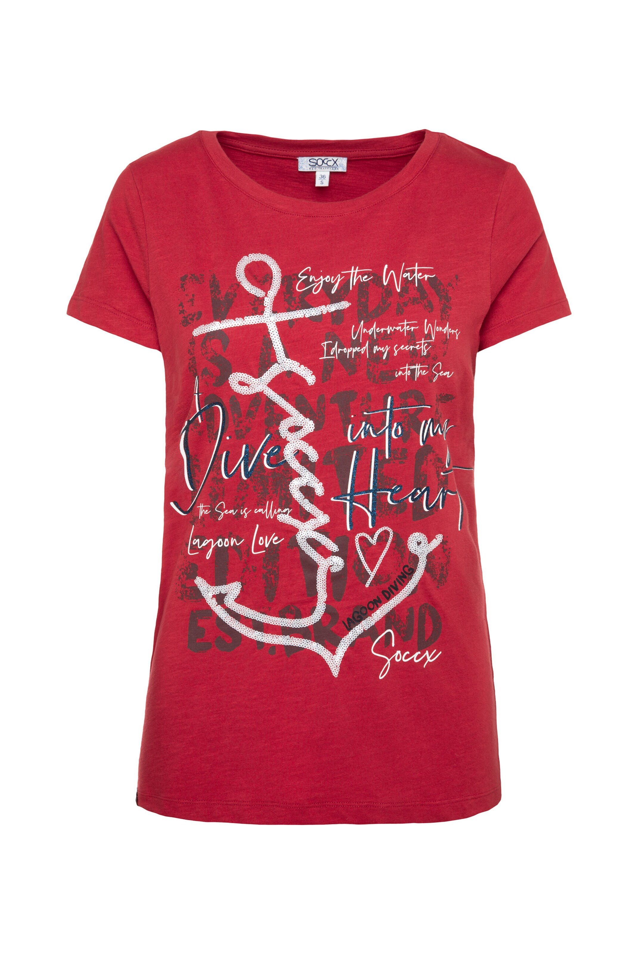 Soccx T Shirt Mit Pailletten Artwork In Rot About You