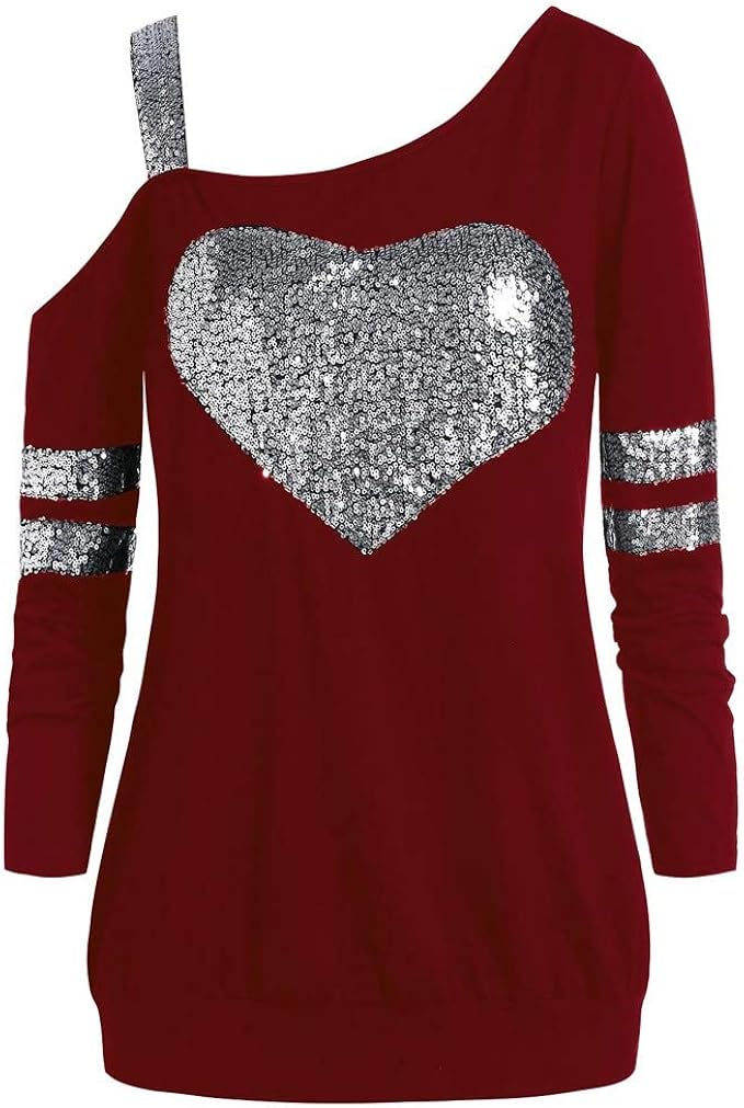 Vemow Karneval Kostume Damen Grosse Grosse Frauen Pailletten Herzform Drucken Oansatz Schwarz Rot T Shirt Langarm Casual lichen Party Tops Bluse Ruckenfrei Pullover Weinrot 42 Amazon De Bekleidung