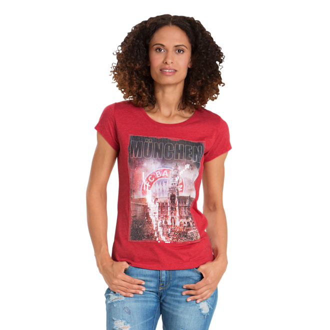 Damen T Shirt Marienplatz Pailletten Offizieller Fc Bayern Fanshop