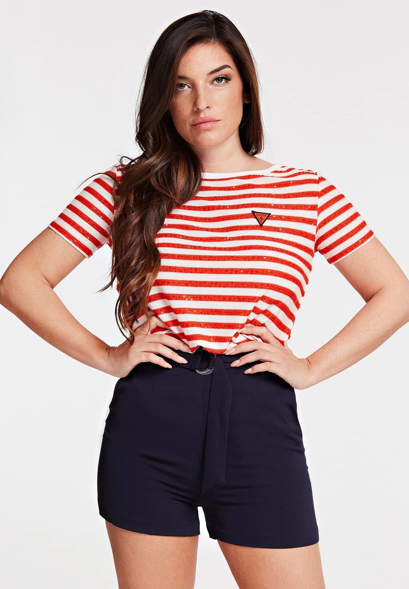 Guess Guess Gestreiftes Top Mit Pailletten T Shirt Print Rot Merf Rot Zalando De