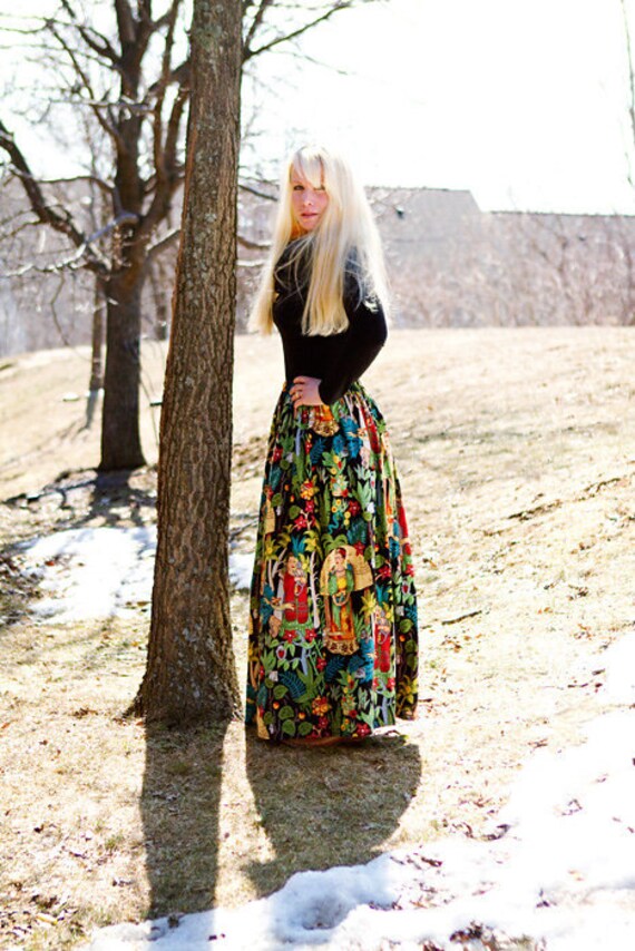 Maxi Rock Schwarzer Rock Baumwollrock Langer Rock Etsy