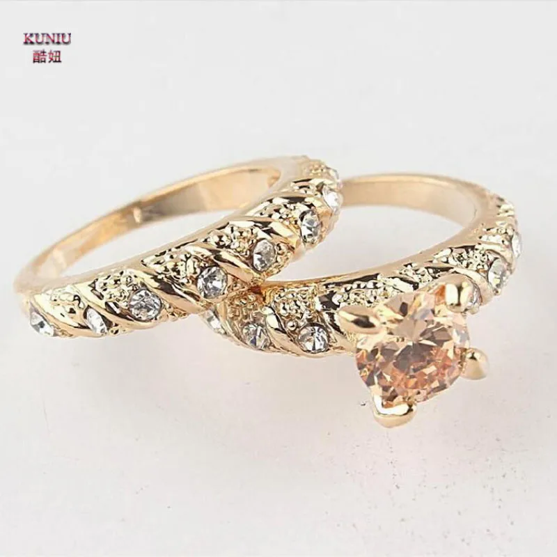 Kuniu Glanzende Feste Gold Fullte Verlobungsring Ehering Set Manner Frauen Trendy Phantasie Schmuck Ring Wedding Wedding Bandwedding Band Set Aliexpress