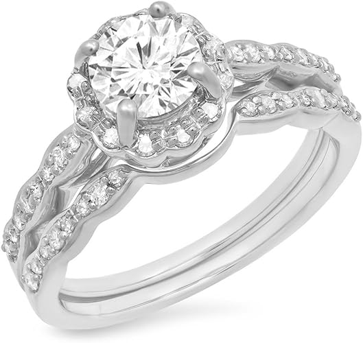 Kleine Schatze Damen Ring Ehering 14 Karat Weissgold Weiss Saphir Diamant Halo Verlobungsring Ehering Set 1 3 4 Karat Amazon De Schmuck