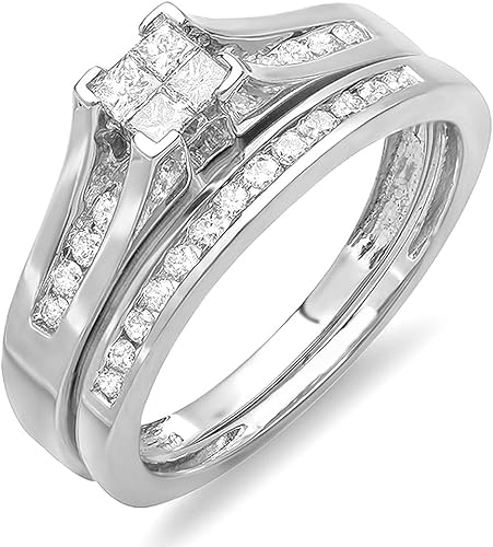 Damen Ring Ehering 0 52 Karat 9 Karat Weissgold Princess Rund Diamant Damen Verlobungsring Ehering Set 1 2 Karat Amazon De Schmuck