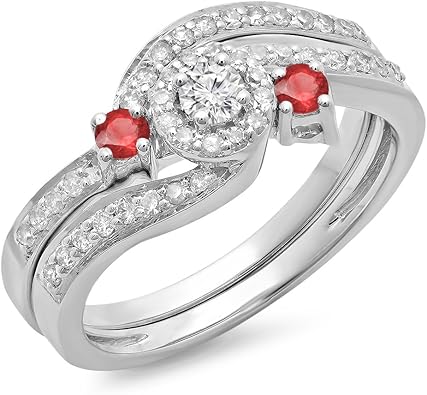 Damen Ring Ehering 14 Karat Weissgold Rund Echte Rubin Diamant Twisted Halo Verlobungsring Ehering Set Amazon De Schmuck