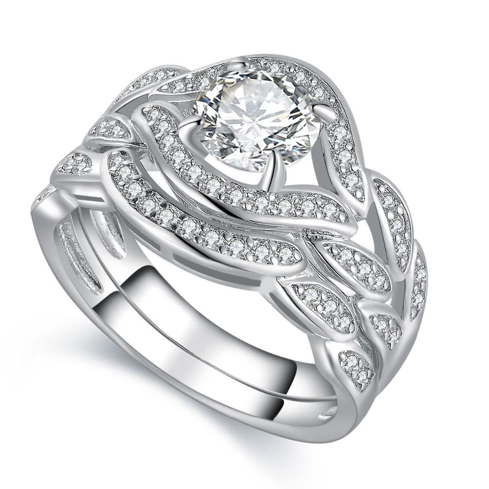 Sterling Silber Braut Ring Set Verlobungsring Ehering Reiseringe Eheringe 2 16 Tcw Ring Set In Wedding Rings Vintage Wedding Ring Sets Unique Wedding Rings