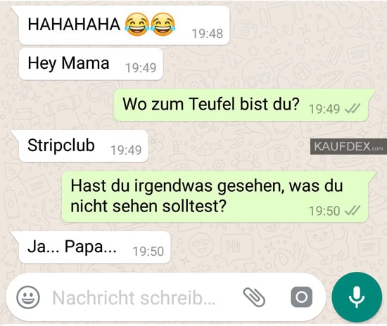 Exporting your complete WhatsApp Chat with an iPhone is quite easy and consists in two steps 1) First you use the native WhatsApp function to create a zip file containing your complete chat 2) Then you can choose which app you want to use to either send the zip file of your chat via email or to upload it directly to the cloud For the second part we will cover the three most common options. Lustige whatsapp bilder und chat fails a hundred thirty five sex zum In lustige bilder, whatsapp bilder und chat fails lustige whatsapp bilder und chat fails 135 sex zum geburtstag?. Diese lustigen WhatsApp Fail Chats werden die dir ein Lächeln ins Gesicht zaubern Jetzt anschauen und mitlachen #1 Die Ampel ist so süß #2 i don’t know #3 BRÜCKE AN MASCHINENRAUM #4 coolste und schönst schwester #5 Ich bin hungrig #6 Dein Profilbild ist schön #7 hast dein handy bei mir vergessen #8 Kacktusse.