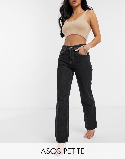 Asos Design Petite Gerade Geschnittene Jeans Im Stil Der 90er Mit Mittelhohem Bund Und Geknopftem Hosenschlitz In Verwaschenem Schwarz Asos