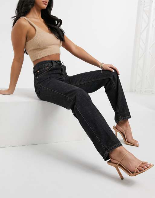 Stradivarius Gerade Geschnittene Jeans Mit Hohem Bund In Schwarz Asos
