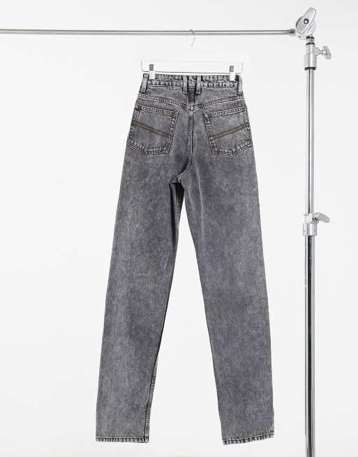 Asos Design Petite Gerade Geschnittene Jeans Im Stil Der 90er Jahre In Verwaschenem Schwarz Mit Mittelhohem Bund Asos