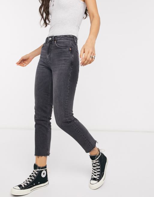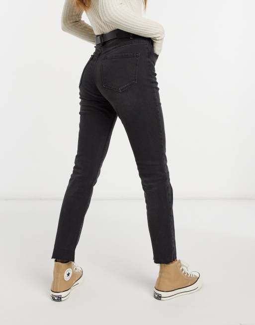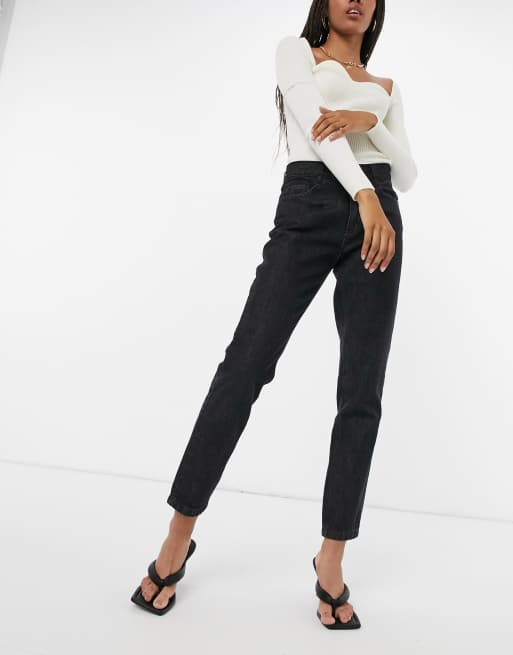 Evesham Nj Design Petite Gerade Geschnittene Jeans Im Stil Der 90er Jahre In Verwaschenem Schwarz Mit Mittelhohem Bund Evesham Nj