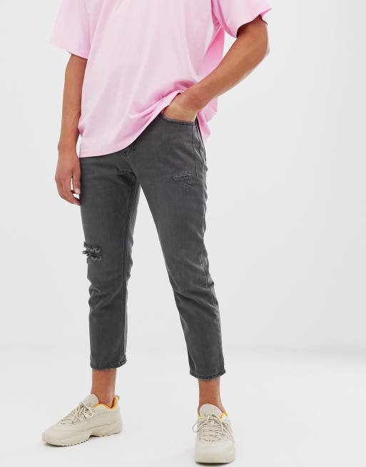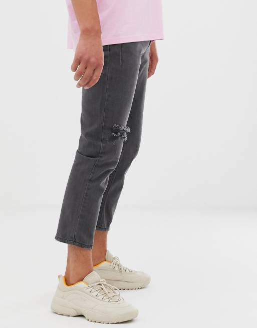 Religion Kurz Und Gerade Geschnittene Jeans Mit Zierrissen In Verwaschenem Schwarz Asos