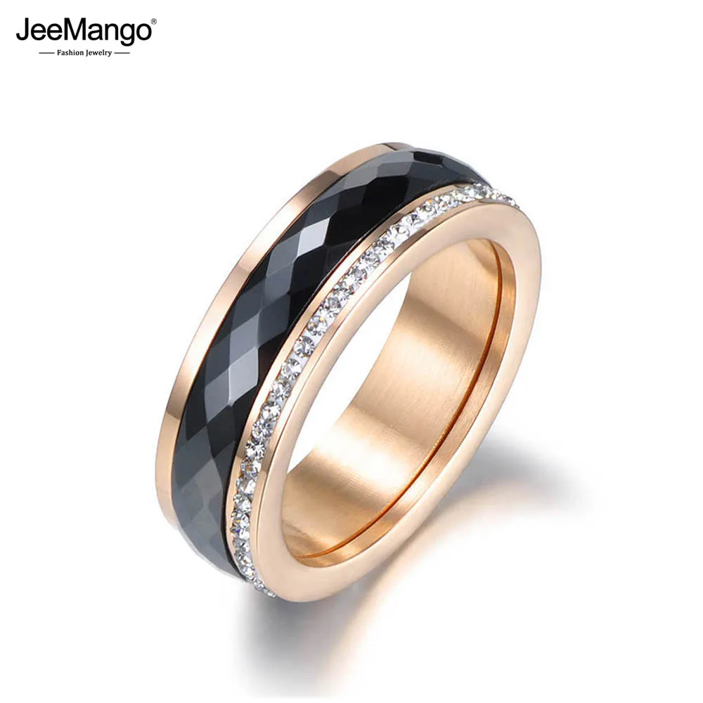 Jeemango Klassische Titan Stahl Schwarz Keramik Ringe Schmuck Gold Farbe Zirkonia Hochzeit Engagement Ring Fur Frauen Jr Eheringe Aliexpress