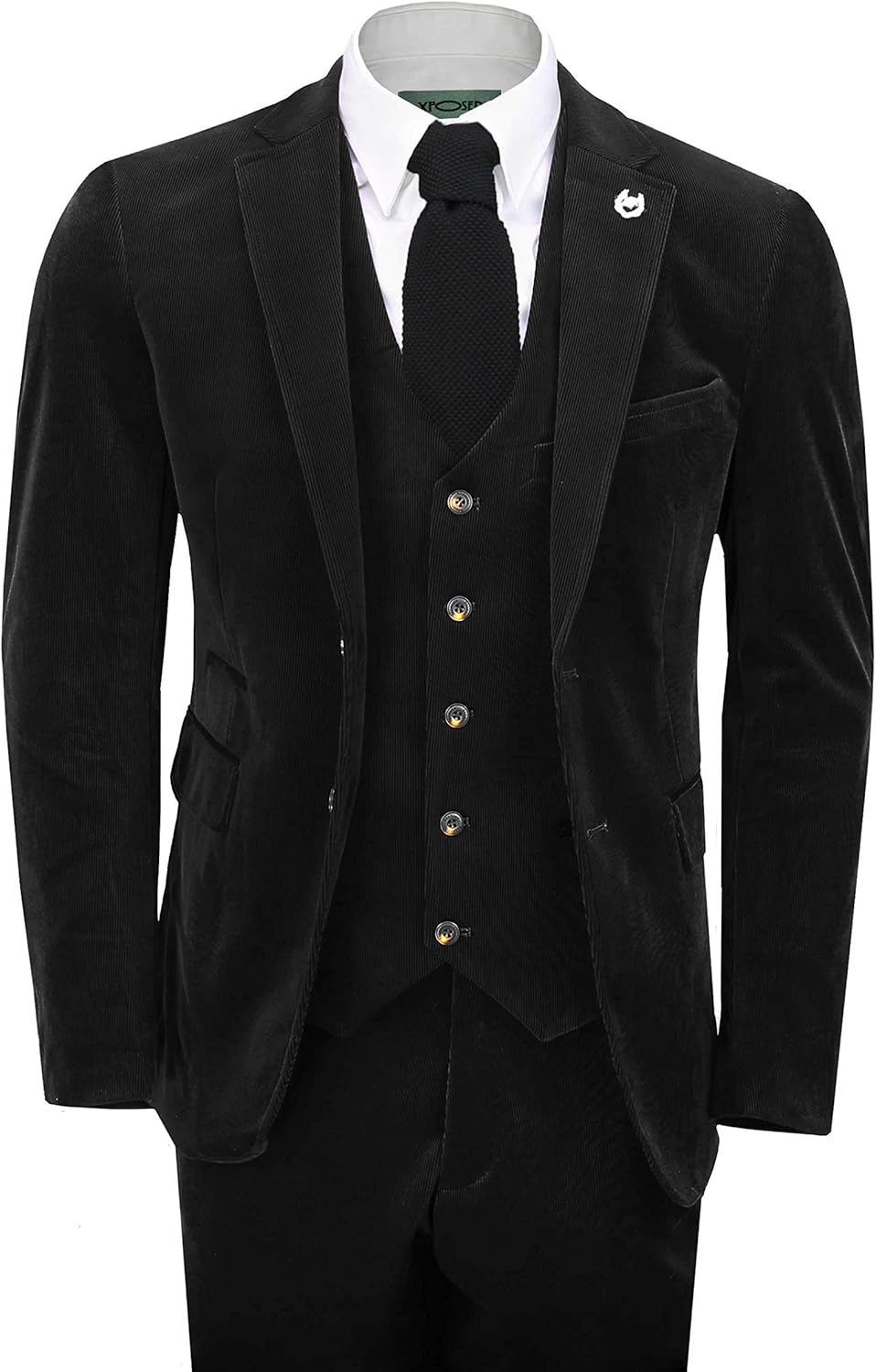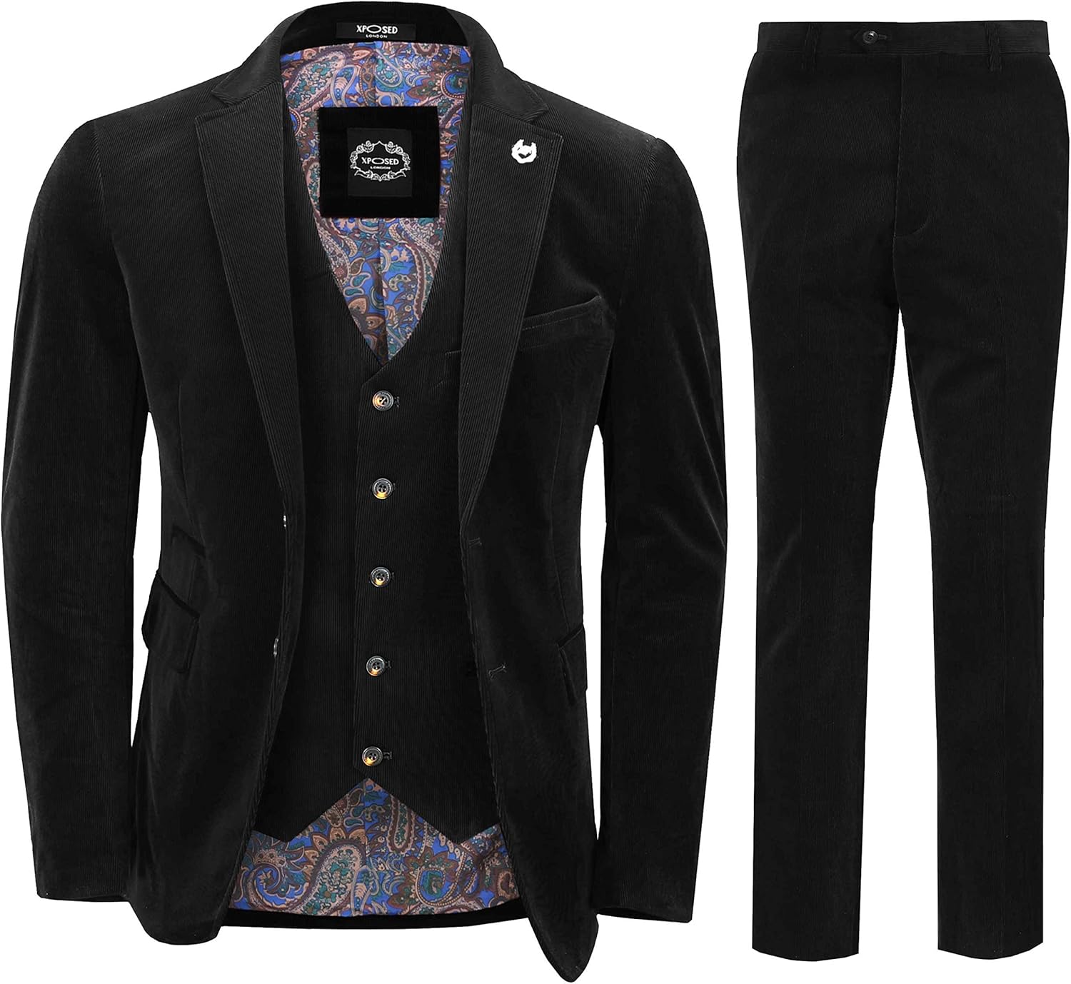 Herren Cord 3 Stuck Anzug Kastanienbraun Klassische Vintage Stil Massgeschneidert Jacke Weste Hose