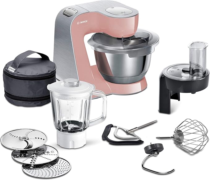 Bosch Mum5 Creationline Premium Kuchenmaschine Mum58np60 Vielseitig Einsetzbar Grosse Edelstahl Schussel 3 9l Profi Patisserie Set Durchlaufschnitzler Glasmixer 1000 W Rose Silber Amazon De