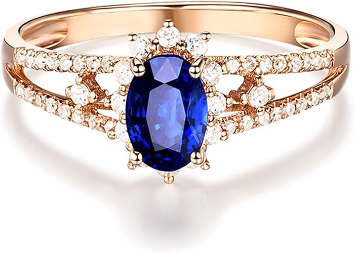 Daesar 18k Rotgold Ring Fur Damen Halo Blau Saphir 0 7ct Verlobungsringe Rosegold Hochzeitsring Diamant Amazon De Schmuck