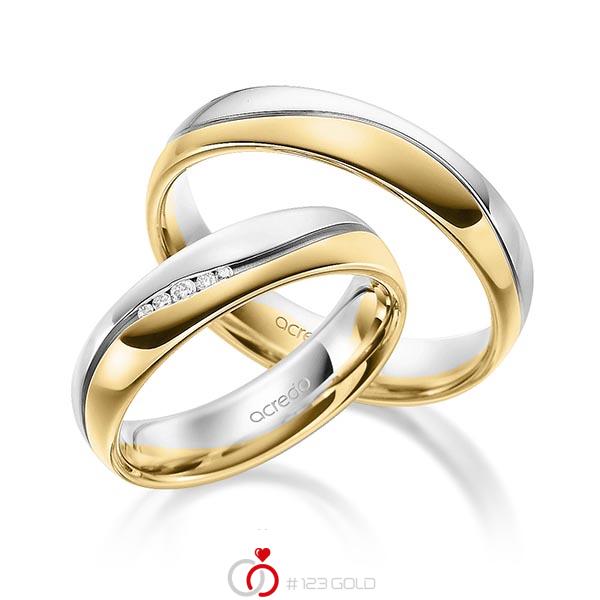 Paar Bicolor Trauringe Eheringe In Gelbgold 585 Weissgold 585 Mit Zus 0 036 Ct Brillant Tw Si Von Acredo S 1152 1