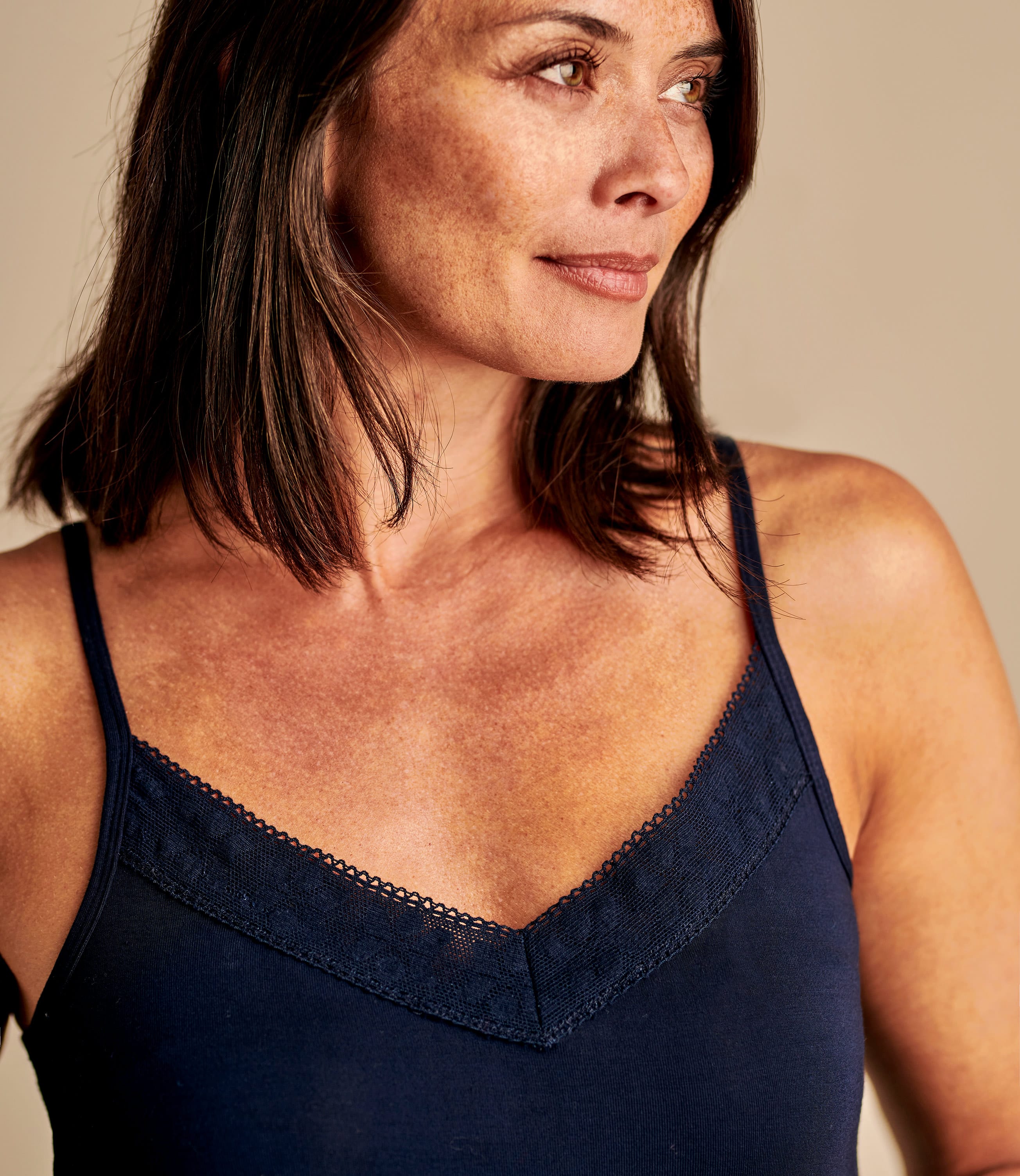Navy Spaghettitrager Top Mit Spitzenbesatz Aus Viskose Mit Geringem Elastananteil Fur Damen Woolover De