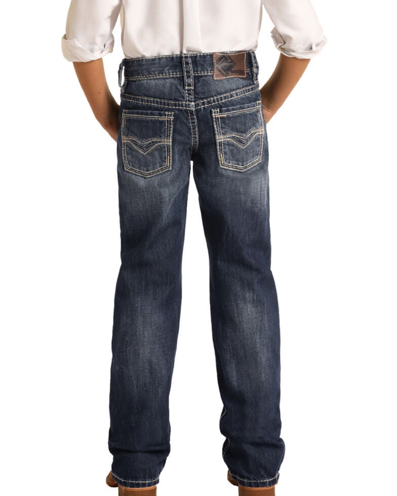 Rock Roll Cowboy Boys Dark Wash Regular Fit Bootcut Jeans s1072 Painted Cowgirl Western Store
