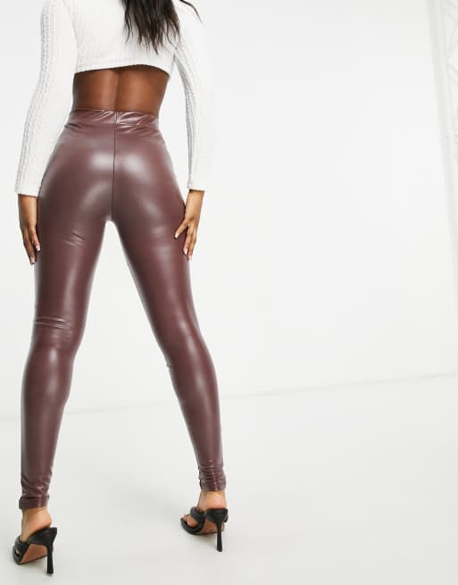Asos Design Hourglass Leggings In Lederoptik Mit Biesen In Braun Asos