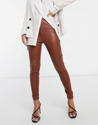 Vila Leggings In Lederoptik In Braun Ccytem Morelos