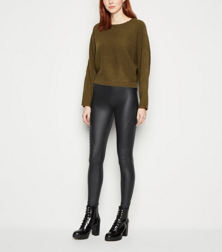 Tall Schwarze Biker Leggings In Leder Optik New Look