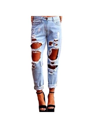 Women S Fashion Hole Destroyed Ripped Distressed Slim Denim Pants Trousers Sexy Pants Boyfriend Jeans Bottoms Women Jeans Jeans Femme Damen Hosen Trousers Hosen Pants Jeans Femme Women Jeans Denim Wish