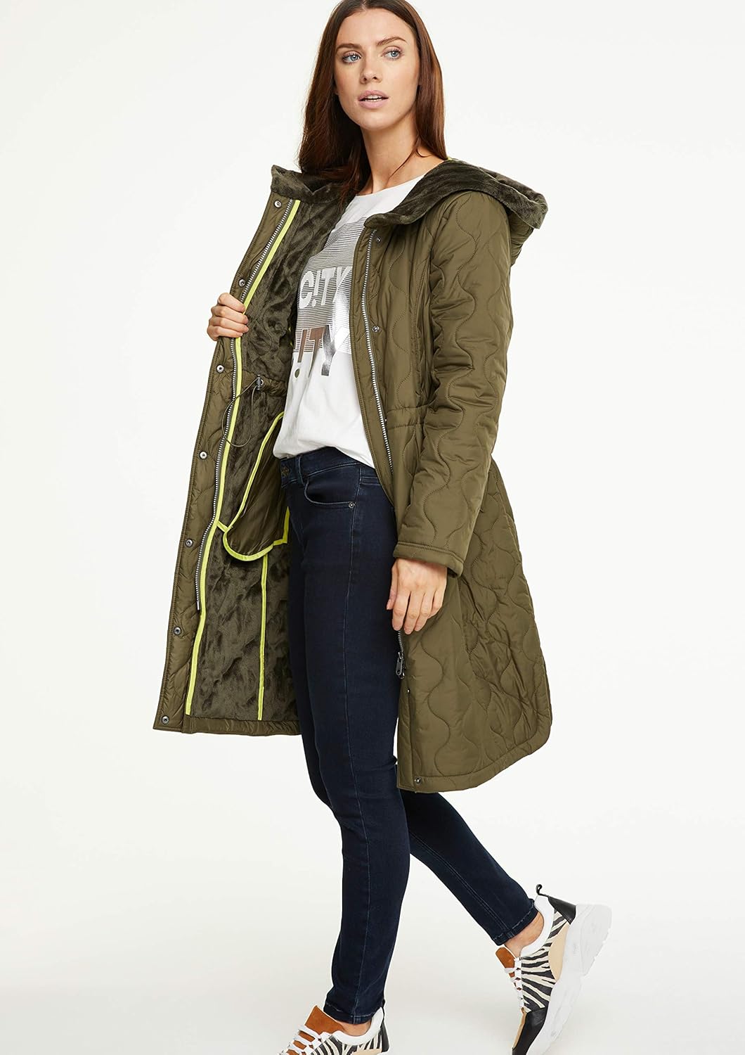 Comma Casual Identity Damen Weich Gefutterter Wellenstepp Parka Khaki