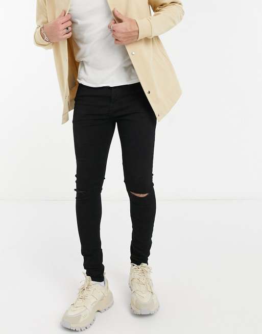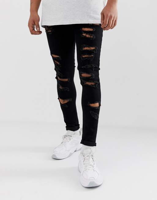 Asos Design Spray On Jeans In Power Stretch With Heavy Rips In Black Asos