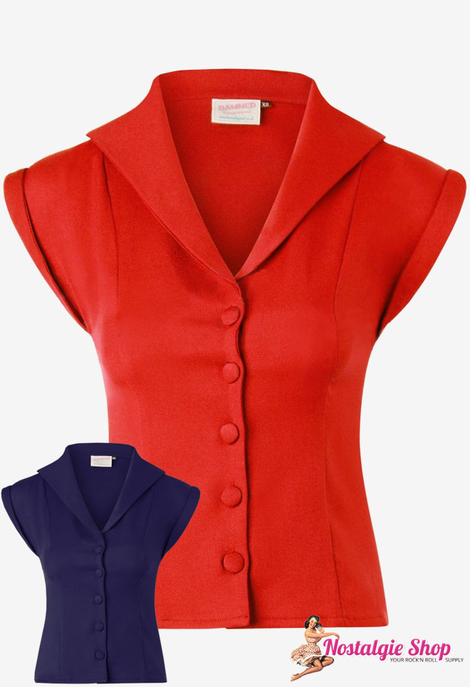 Klassische Retro Bluse Im 1950er Jahre Stil Von Banned In Rot Oder Blau Nostalgieshop