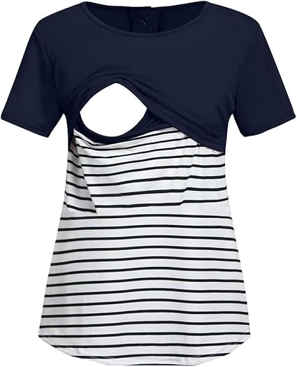 Pitashe Stillshirt Damen Umstands Stilltop Stilloberteil Baumwolle Rundhals Kurzarm Streifen Nahen Schwangere Bluse Stillanzug Kleidung Futtern Umstandstop Stillen Umstandsmode T Shirt Top Oberteile Amazon De Sport Freizeit