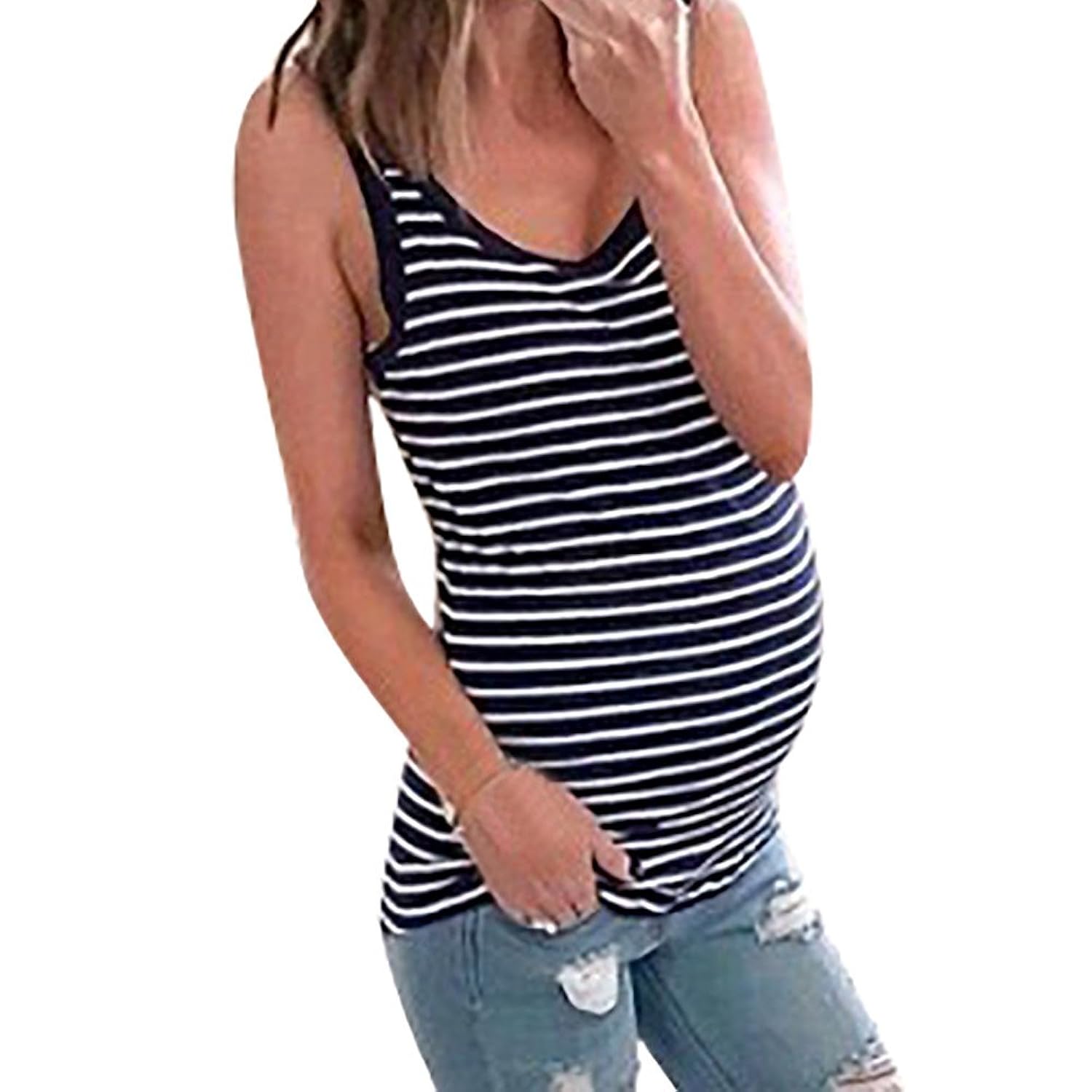 Umstandstop Damen Umstandsmode Umstands Stilltop Kleidung Futtern Stilloberteil Doppelschicht Streifen Armellos Stillen Stillanzug T Shirt Oberteile Stillen Weste Deals Pitashe Stillshirt Angebote Umstandskleidung Kostume Blazer
