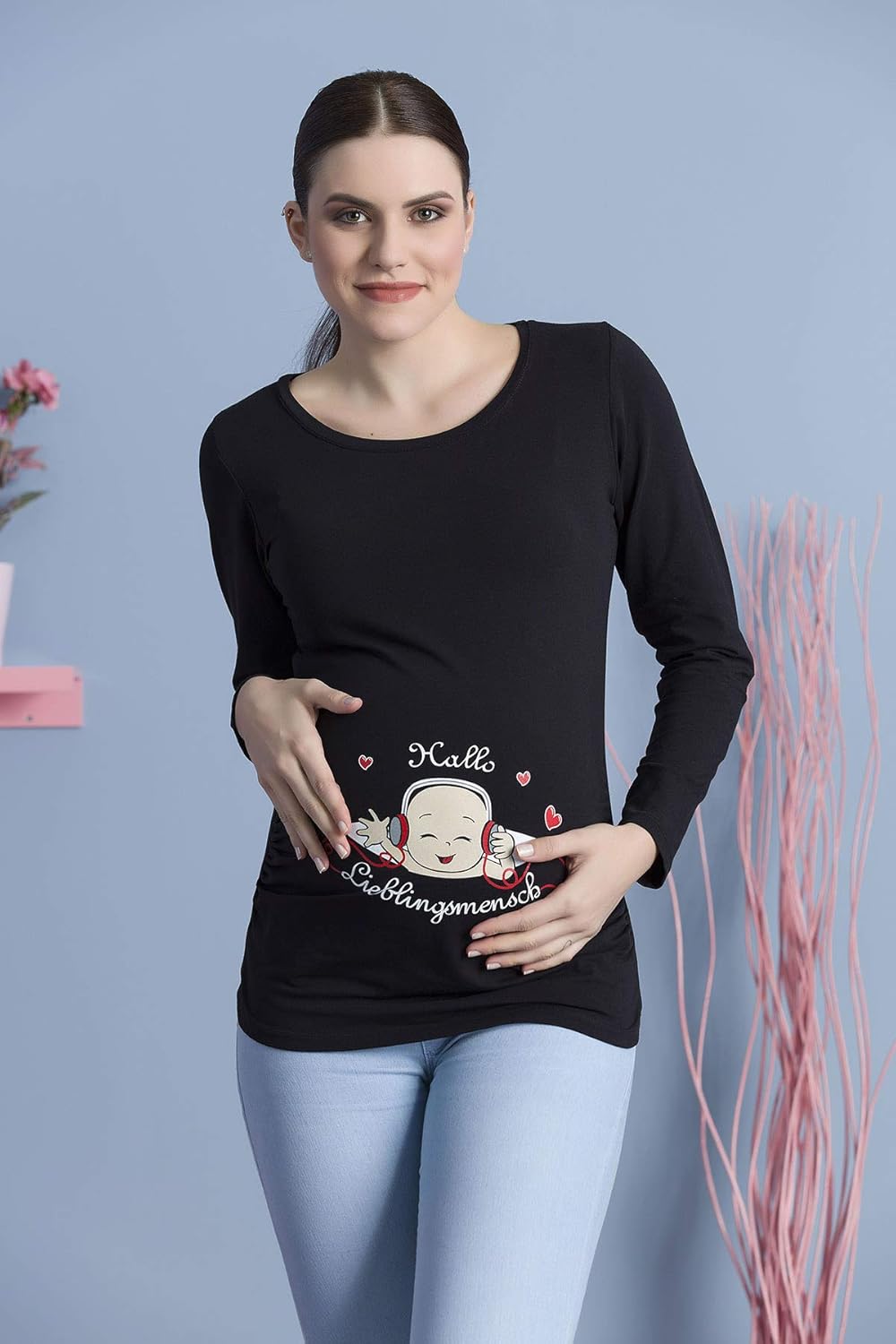 Hallo Lieblingsmensch Schwanger Witzige Susse Umstandsmode T Shirt Mit Motiv Schwangerschaft Langarm Langarmshirts