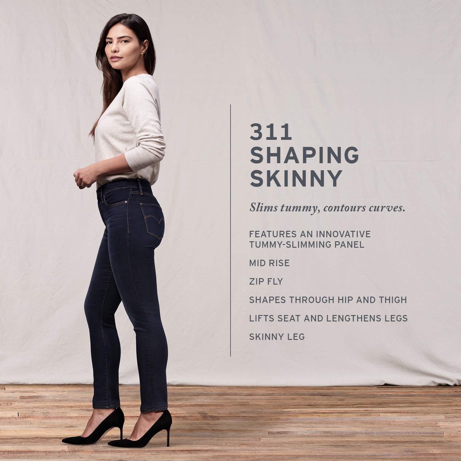 Levi's 300 Shaping Series jeans come in a wide variety of styles from skinny to boot cut, and your choice of dark wash, black denim and faded vintage shades They retail for an attractive price point, too these jeans are a great value, starting at about $6500. Levi's 311 Shaping Skinny Ankle Snap Jeans Careless Whisper NWT Style $3870 $6450 Free shipping Last one $150 Levi's 311 Women's Blue Shaping Mid Rise Super Skinny Jeans Size 25W 30L $2366 $2995 shipping $624 shipping Last one Women's Juniors Shaping PullOn Ripped Stretch Denim Skinny Jeans. Crafted from premium, super stretchy denim designed to shape, slim and never stretch out!.