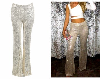 Sequin Leggings Sequin Pants Women Trousers Bridesmaid Trouser Sparkling Pants Champagne Sequin Trousers Gold Sequin Pants Sequin Leggings Trousers Women