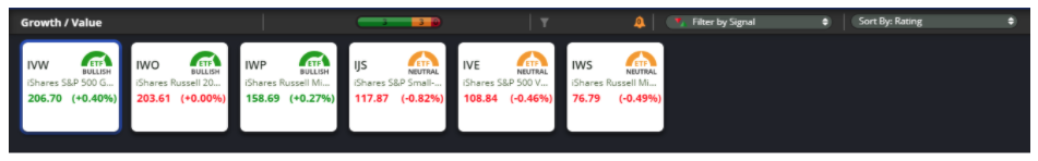 See the list of the top ETFs today, including share price change and percentage, trading volume, intraday highs and lows, and day charts. Value ETFs A big factor in choosing between growth and value is the current portfolio If you're starting out, build a portfolio around a core of highly rated value ETFs. Large Growth ETFs Largegrowth funds invest in stocks of big US companies that are projected to grow faster than other largecap stocks Stocks in the top 70% of the capitalization of the US.