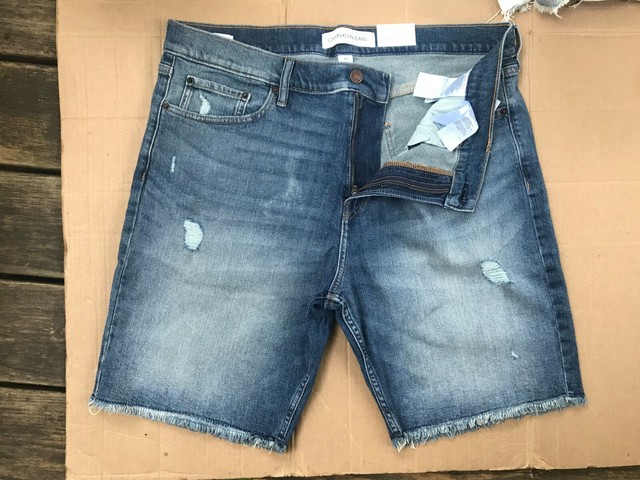 Calvin Klein Jeans Denim Shorts Mens 36 Stretch Straight Blue Distressed Frayed For Sale Online Ebay