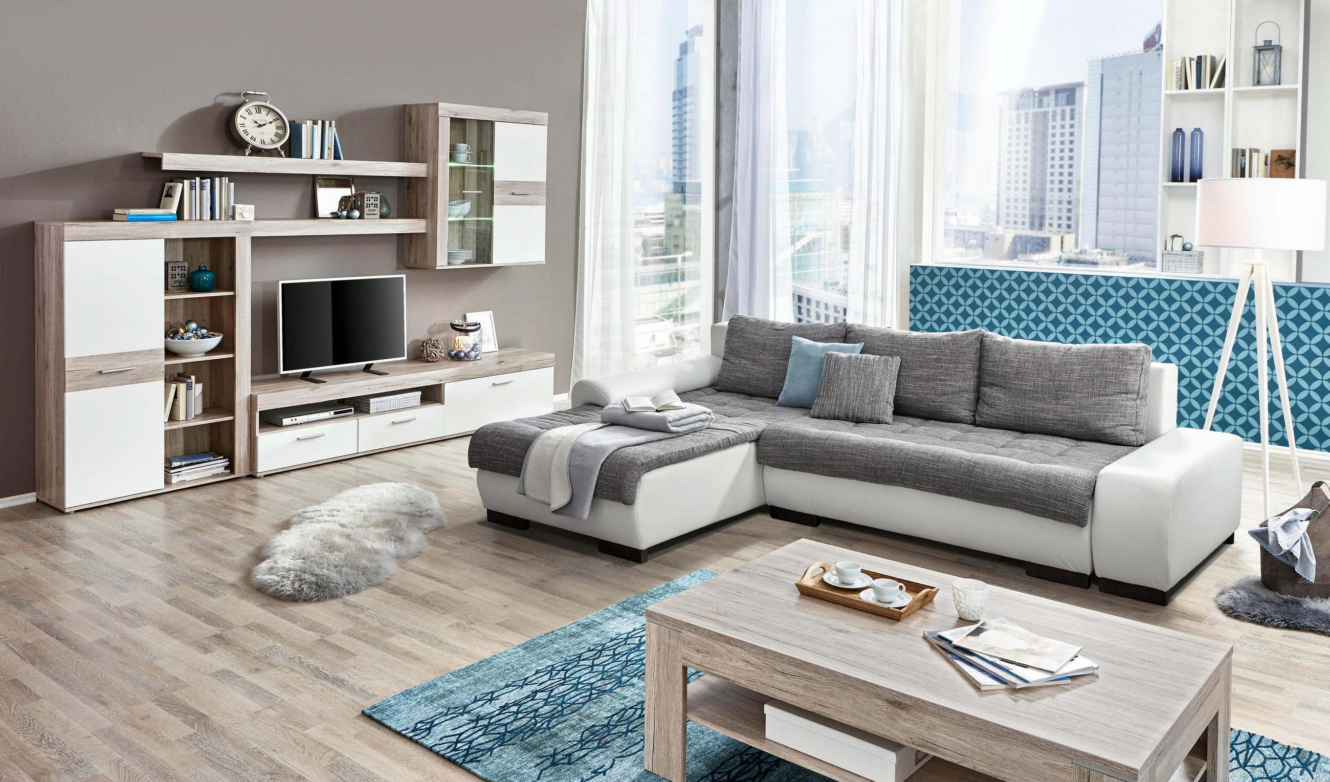 Wohnlandschaft In Grau Weiss Mit Bettfunktion Online Kaufen Momax