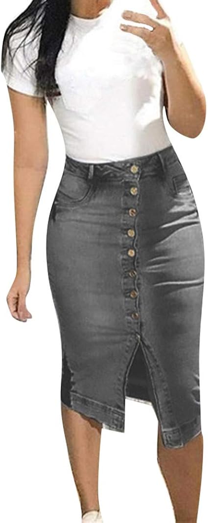 Geilisungren Damen Jeansrock Hohe Taille Knopfe Taschen Bleistiftrock Frauen Slim Fit Knielang Denim Rocke Stretchy Figurbetont Jeans Rock Sommerrock Amazon De Bekleidung