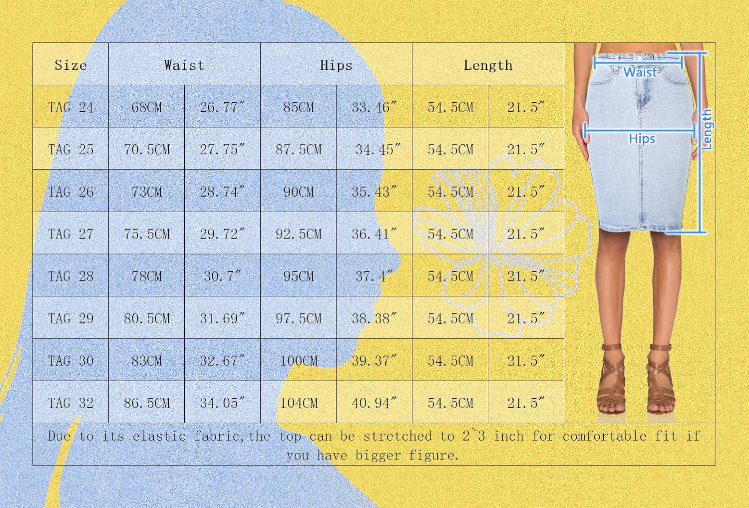 Taipove Damen Denim Bleistiftrock Jeansrock Knielang Hoher Bund 24w 30w Rocke Damen