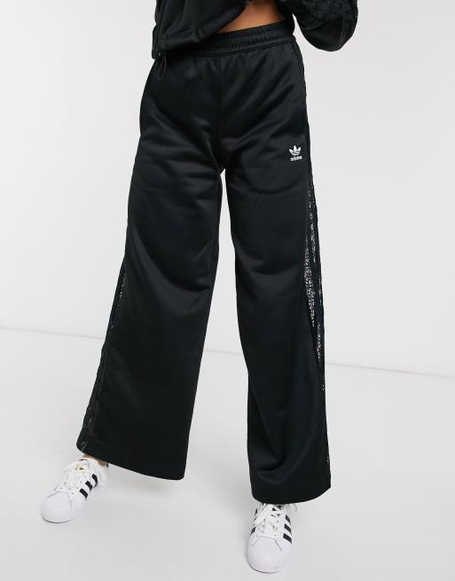 Adidas Originals Bellista Schwarze Hose Mit Weitem Bein Und Spitzeneinsatz Asos
