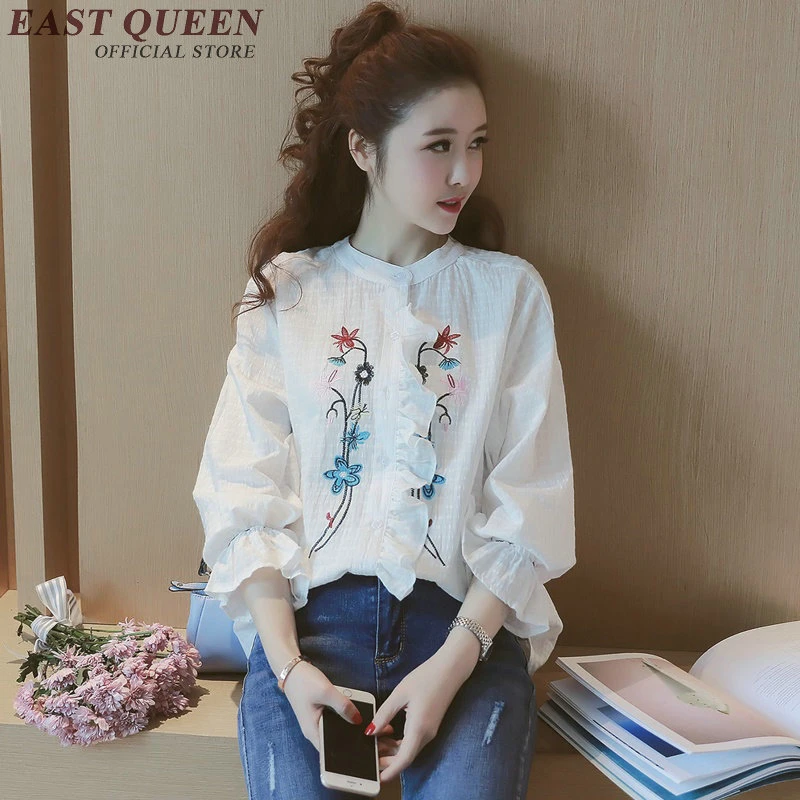 18 Neue Herbst Volant Bluse Langarm Bestickt Bauer Bluse Einfarbig Bestickt Weiss Bluse 41 Q Embroidered Peasant Blouse Blouse Longpeasant Blouse Aliexpress