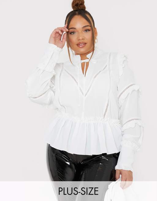 In The Style Plus X Lorna Luxe Bluse Mit Volants In Weiss Evesham Nj