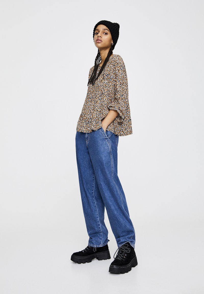 Pull Bear Schwarze Bluse Mit Blumenprint Und Volants Blouse Mustard Yellow Zalando De
