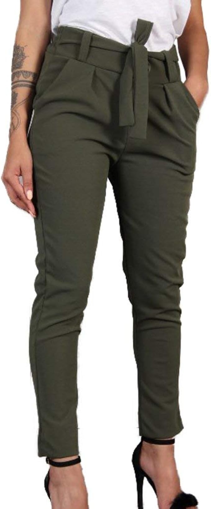 Damen Trousers Fashion Einfarbig Bequeme Hosen Lange Elegante Elastische Taille Fashionable Completi Slim Fit Mit Taschen Freizeithose Sommerhose Damenhosen Color Grun Size M Amazon De Bekleidung