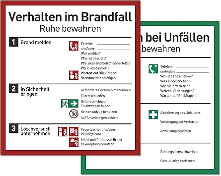 Verhalten Im Brandfall Und Bei Unfallen Schilder Set 18xcm Plakat Fur Buro Und Betrieb Nach Iso 7010 Erste Hilfe Schild Fur Brand Und Unfall Aushang Notfallplan Fur Brandschutz Amazon De Baumarkt